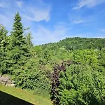 Из дома отдыха открывается вид на горы с террасы. В ванной комнате также есть душ.